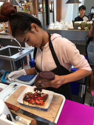 その2。行きたくない場所ナンバーワンのニマンヘミン通りへゴイが働き始めたので、意を決してそこへ行ってみることに。彼女の働いている店は、電車の駅の方にあるトーストに色々トッピングする結構人気のあるカフェの新支店。といっても小さなブースに色々なお店が入っている中の一つですが、朝11時から21時までその日は同僚が休みのため、1人で働いていました。