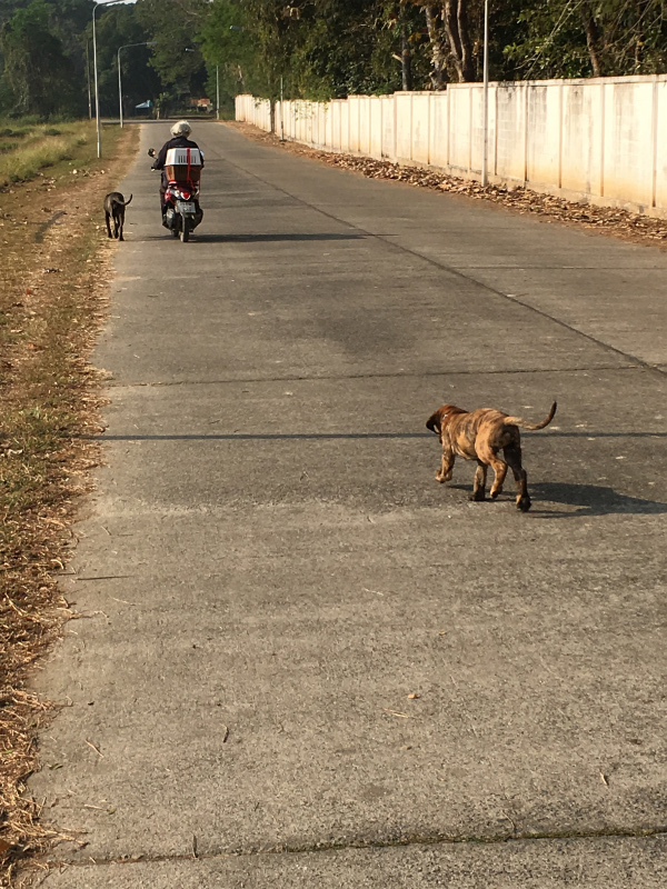 で、ちょっとだけのお散歩の時に出会った犬の親子。飼い主はタイ人の女性。とても賢い犬で、躾もきちんとされていて、なかなかでした。2ヶ月の子犬はまだフラフラしていたけど、タイ人の飼い主はすでにスパルタ教育開始。今まででタイで会った一番しっかり躾ができた犬かも。