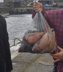 魚屋さんがない(必要ない)島なので、山秋さんが頼んでおいてくれたお魚を直接漁師さんから買いました。お野菜なども買うことができるよろず屋さんは数軒あります。お酒を売っているのは一軒のみだけど。