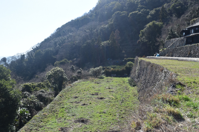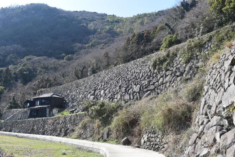 平さんのお爺さんが作り始めた棚田。集落にも多く見られる石を組み合わせて積み上げてゆく独特の石壁。戦中、戦後と生き抜いて来た平さんのお話を、四国にある日本一長い佐田岬を海の向こうに眺めながら伺った貴重な時間。