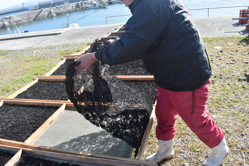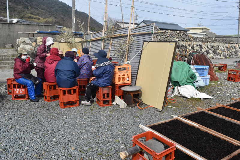 翌朝もほんの少しだけヒジキのお手伝いを海辺でさせていただいて、昼の船で帰路に。