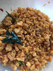 タイからお土産にと持って来て賞味期限が切れた直訳すると「魚と肉と野菜と唐辛子をローストして乾かしたもの」なるものを煮浸しなどに加えると、あら不思議、タイ料理に!