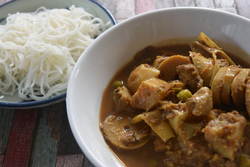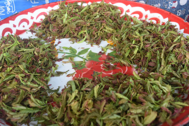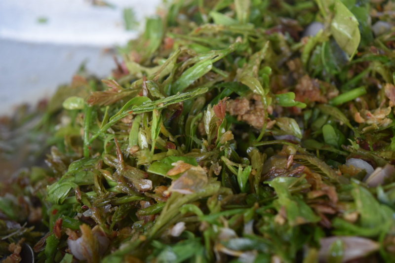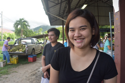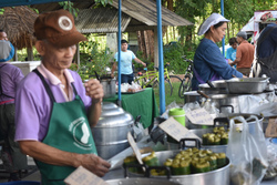 季節のものが並ぶ惣菜屋さん。最近は新鮮なマカーム(タマリンド)の葉がとれるようで、大好きな「ヤムバイマカーム」というタマリンドの葉のサラダが売っています。ほどよい酸味でさっぱりしていて、以前バーンロムサイにいた保母のティムさんの得意料理でした。もちろん購入!
