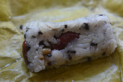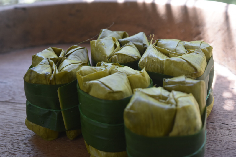 「カオトムマット」。もち米に色々なものを入れてバナナの葉で蒸すのですが、このお豆入りがとても美味しい!甘いの苦手な私も、これなら食べることができる美味しさです。
