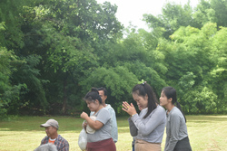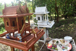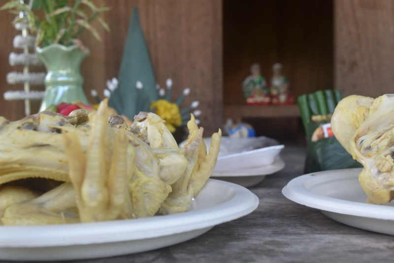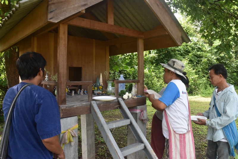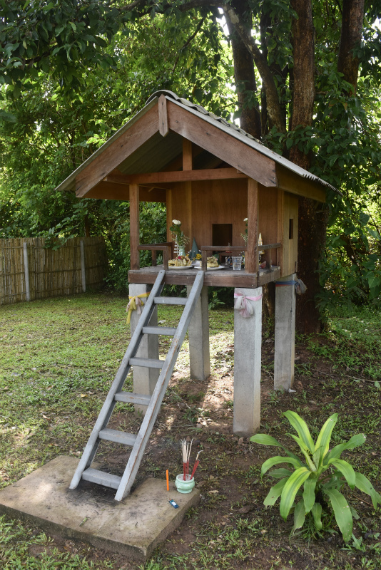 私の家の神様は、ゲストハウスが建っている敷地の土地の神様が担当?だというので、儀式に参加。儀式といってもポーナーンを呼ぶほど大袈裟なものではなく、大工さんや庭師の中で儀式の言葉を唱えられる人がそれぞれの祠で司ってくれました。