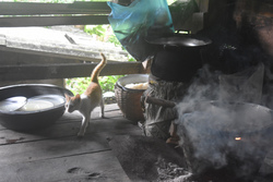 母屋には部屋ががあるのですが、チャンシーさんもお父さんも高床式の下のスペースに蚊帳を吊って寝ています。毎日がキャンプ! そっちの方が涼しくてサバーイサバーイとのこと。
