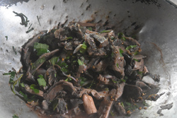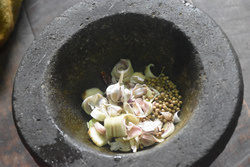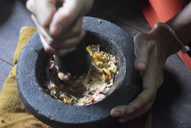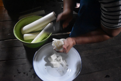 そして夕食の準備。今日はゲーンユアック(バナナの茎の中の芯のカレー)。