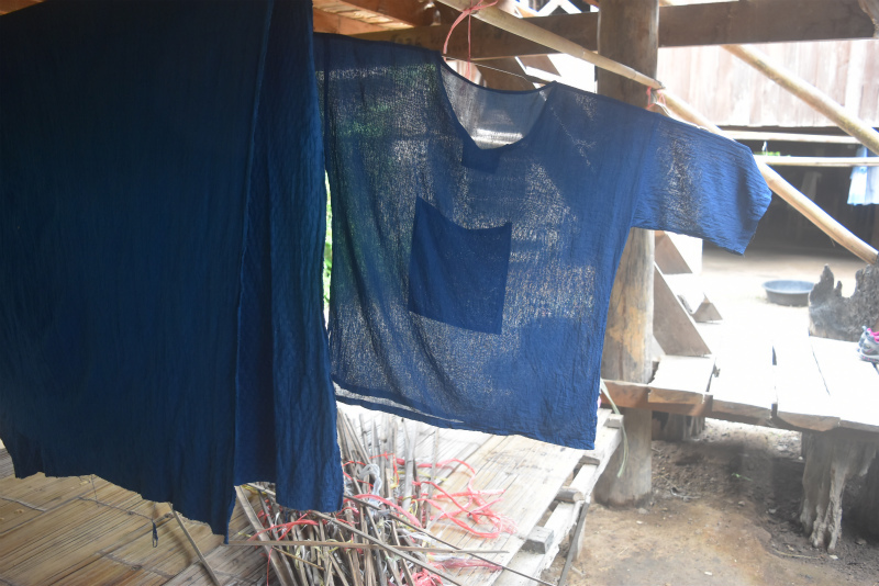 チャンシーさんの家には次から次へと村のおばちゃんたちが糸を取りに来て、持ち帰って自宅で織ります。糸も天然染。