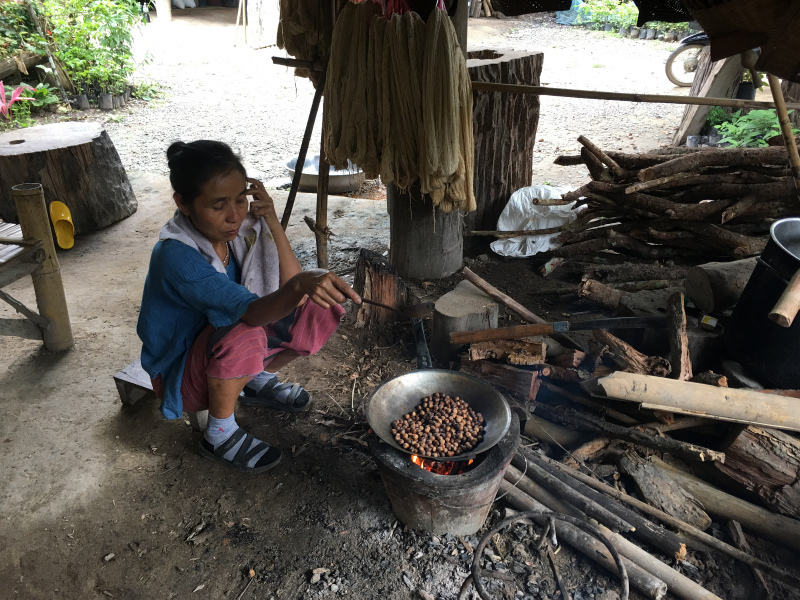 土に一度化学肥料が入ったら、その土地は一生使えなくなる!というチャンシーさんは、村の田畑ではケミを使わずに、古くからの伝統文化を守りながら、でも必要最低限の現金収入が得られるようにと、染めや織りを通して村人たちが生活してゆけるように導いている、その導き方がとても自然体なのだと思います。でも村の女性たちはほぼ40歳以上。高齢化は否めないし、若い子が村で一生過ごすのも、今のご時世、なかなか難しいというのは現実です。