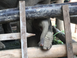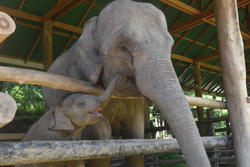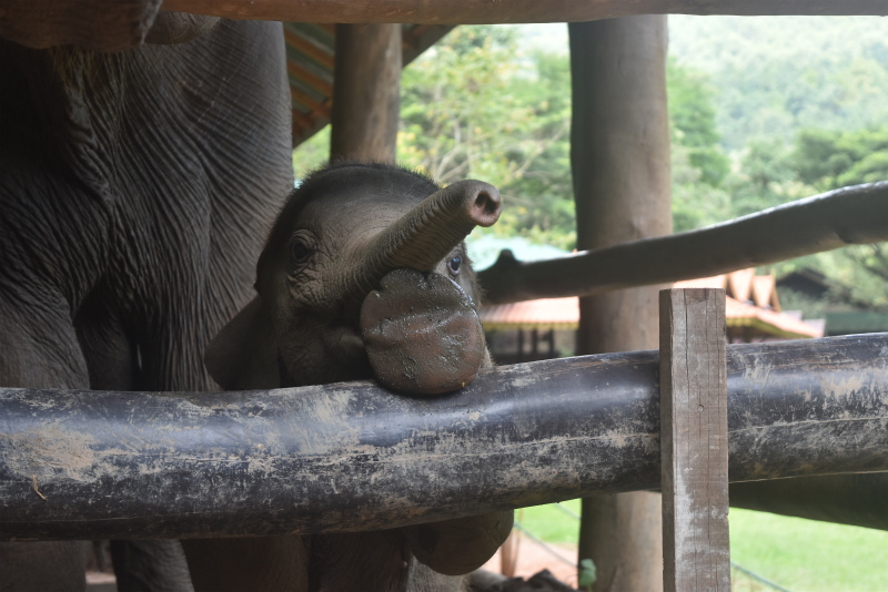 1歳の2頭の子象と、生後1ヶ月のナムティップとソイファーという赤ちゃん象。計4頭います。