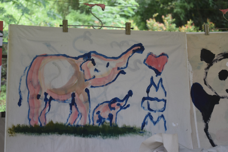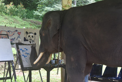 こういう芸を覚えさせるためには、少々虐待らしきものがあるのだと思っていたのですが、象に絵を教えて11年のベテラン先生がおっしゃるには、言葉だけで象はどうやって筆を動かすか覚えるのだそうです。