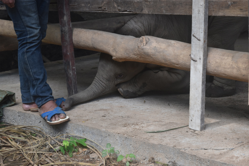 赤ちゃん象はまだ私たちが直接触れることはできません。
