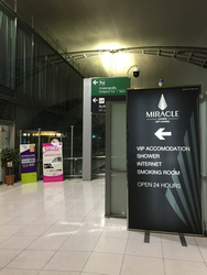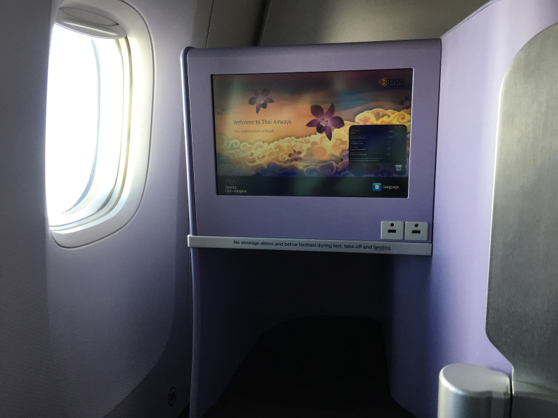 やっと飛び立つもエアホステス曰く、スワンナプーム空港に問題があって到着予定がたたないとのこと。乗り継ぎで特に時間が迫っていた人たちは全員すぐ動けるようにとビジネスクラスの席に移動です。