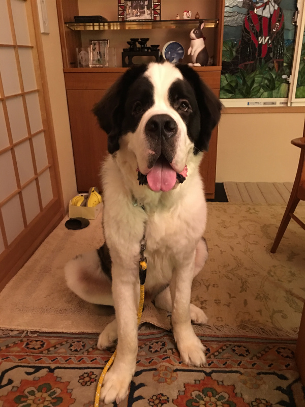 セントバーナードってこんなに大きいのね、というくらい大きくて、でも顔が癒し顔でかわいいのなんの・・。じゃれる手でパチンとやられるとそれなりに迫力のあるパンチです。