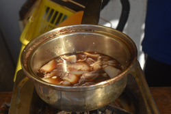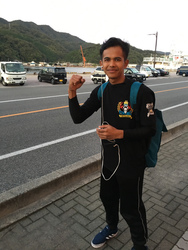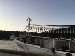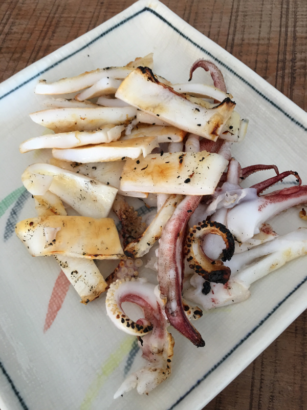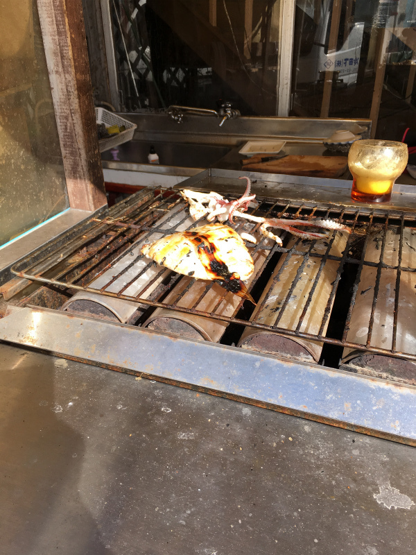 でも空腹で死にそうだったので、朝ごはんは神社入り口でイカ焼き。とれたてのイカを炭火で焼いたり煮たりして、よくビールなしで食べたなと自制心に感動。