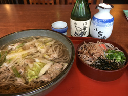 鴨南蛮が美味しいというので、割子蕎麦1枚と一緒に。