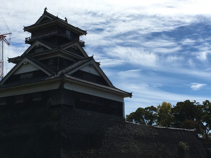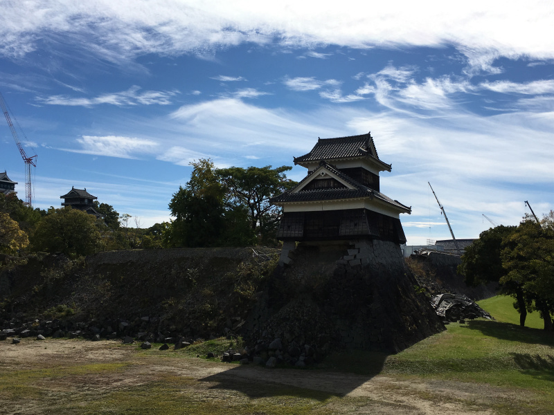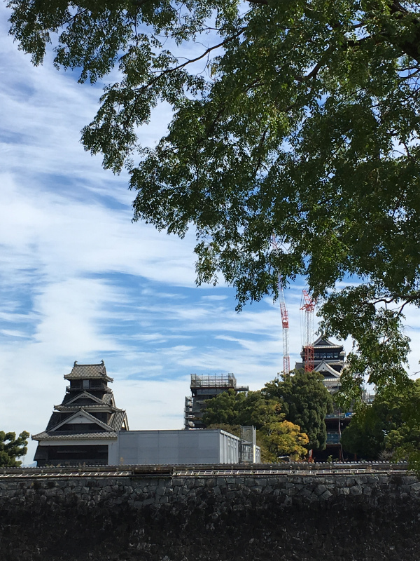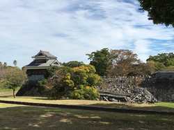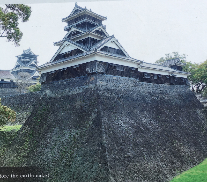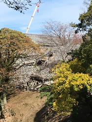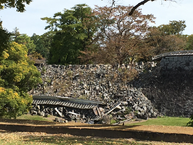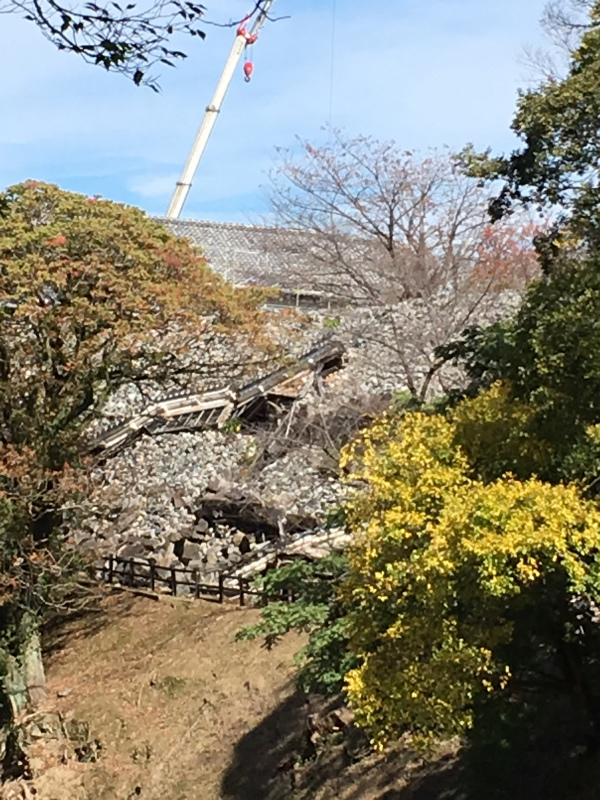 翌日2日、まずは行こうと思っていた熊本城へ行ったら、中へ入る以前にお堀端から地震で崩れた石垣などが目に入り、愕然。