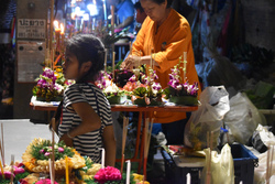 18時過ぎはまだ人もまばらで、すいているうちに「ワットチャイモンコン」というピン川の辺りにあるお寺へ直行。すでに道にはたくさんのクラトン(灯篭)が売っていてベーシックなものは20バーツ、30バーツと値段がそんなに昔と変わらないのが嬉しいです。