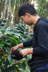 まだまだ今年は熟した赤い豆が少なかったのですが、それでも収穫して良い豆と収穫の仕方をクイ君に教わった生徒たちは、無心にひたすら豆をとります。