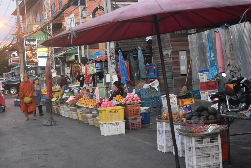 早朝のチェンマイ門に托鉢に来ているお坊さんへタンブンしに行ったり、土曜朝市でご飯食べて散歩したり、ちょっとだけ街中に出たり。