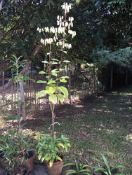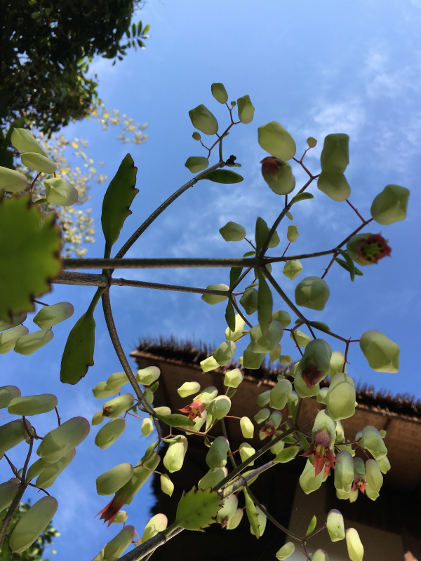 庭では、最初高さ3センチくらいの葉っぱが、グングン伸びて、突然可愛い花をつけたのです。