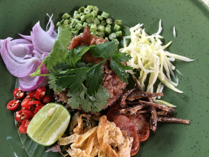 滅多に市内へ行かない私が、たまたま2日続けて出かける用事があり、1日目、迷わず「クイッティアオ・ルア・コンムアン」へ。そして迷わずカオクルックガピ。(海老味噌混ぜご飯)