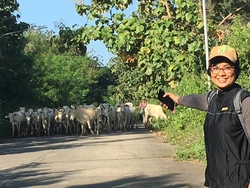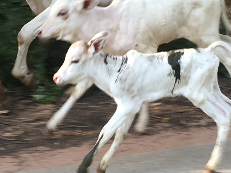 話しは変わって、毎週土曜日は友人のウェウと土曜朝市+ウォーキングを続けています。最近は良く牛に遭遇。まつげが長くてかわいい!!