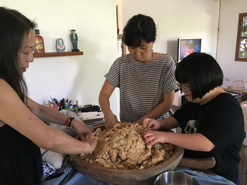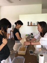 私のぬか床の先生である早苗さんが、夕子さんと花岡さんにぬか床作りを教え、以前私も一度教えてもらったことのある味噌作りを夕子さんがみんなに教えるという日。
