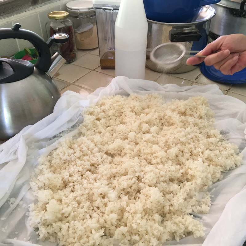 そしてぬか床作り終了後、味噌作りの為の米麹作り開始。麹ってこうやって出来るのね、というのを初めて知りました。生きている!!感動!! チェンマイに来てまさかこのような事をするとは思わなかったワタシ。