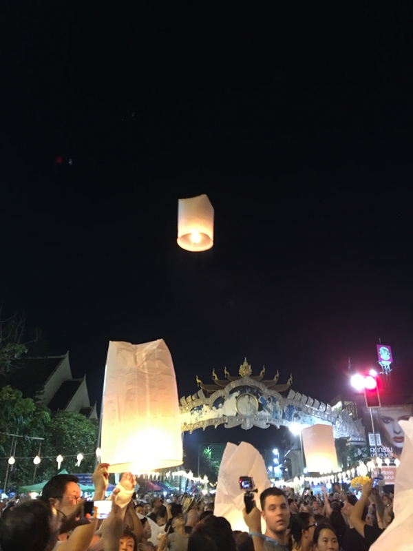 王様が亡くなられたので、今年は派手なパレードや花火などはない、しっとりしたロイクラトーンになるのかと思ったら、ターペー通りはものすごい人!人!人!!