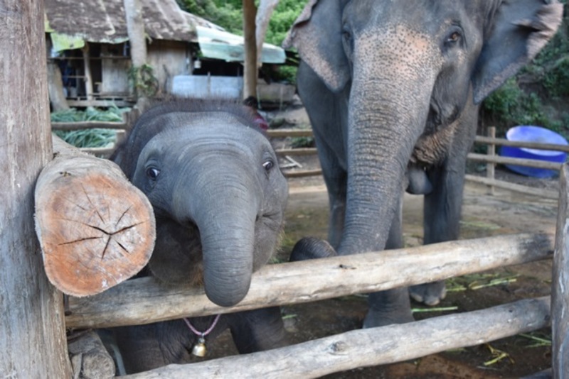 メーサーエレファントキャンプでは、ショーとかは見ないで、生まれて1年目の子象に会いに行って来ました。