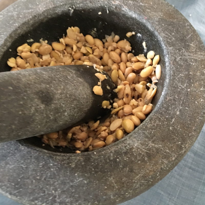 塩きりした米麹に隠し味のお味噌や大豆の茹で汁を加え、潰した大豆とまぜまぜまぜまぜまぜまぜまぜ。楽しい!