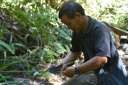 お父さんは63歳。小さい時から歩き回っている森なので、どこにも道はありませんが、知り尽くしています。