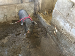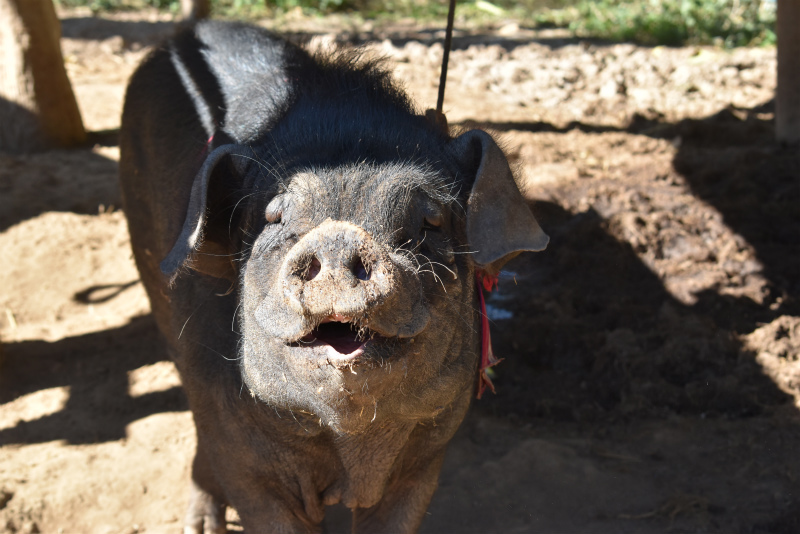 ピックアップトラックから降りると、まず犬たちが出迎えてくれます。