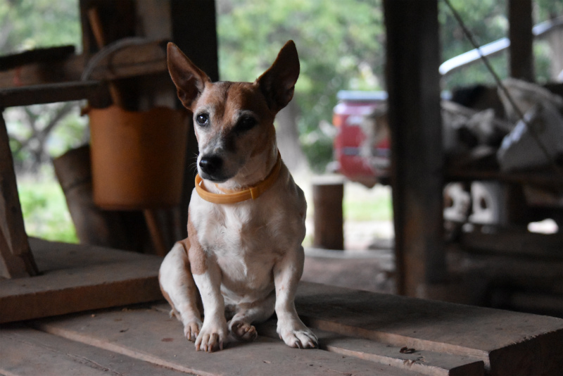 ライフルを携行しているのは、犬たちがもしコブラなどに襲われた時に助けるためだとか。