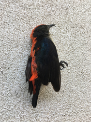 数年前の1羽はコバルトブルー。今回は綺麗な赤い色の毛が。