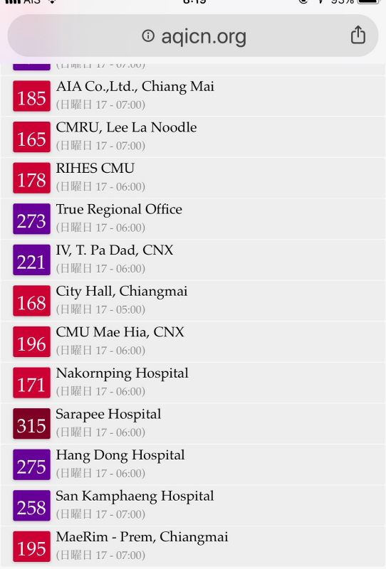 この間、PMなんちゃらで、どのくらい空気が悪いか今日のチェンマイ!みたいなサイトを見ていたら、下の写真のようなものがありました。