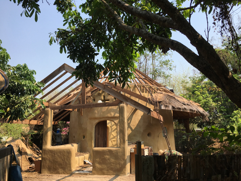 今日からうちのすぐ脇にあるホシハナの土の家が、屋根の葺き替えに入りました。