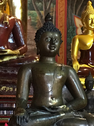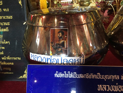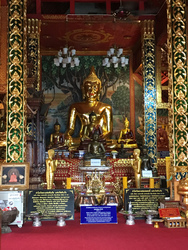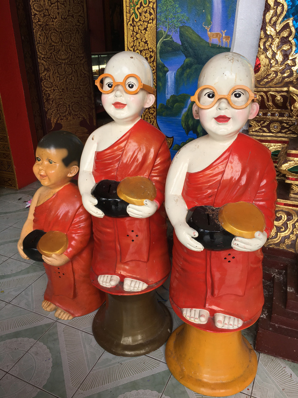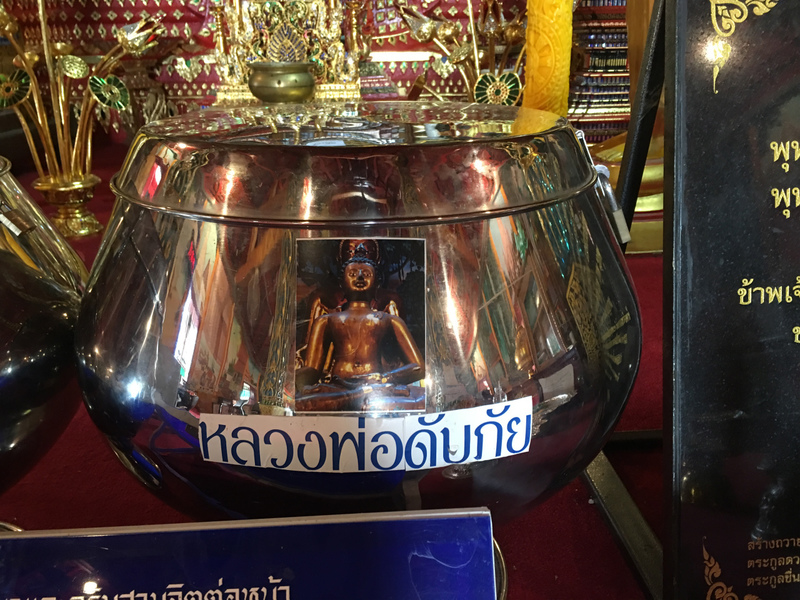 お金を入れる場所が2つあって、ひとつは読めたけど、もう一つがわからず、それなら念のためにと両方に入れて来ました。ちょうどその後タイ語だったので先生に聞いたら、読めなかった方は、借金をしている人が早く借金苦から逃れられますようにというお願いのための賽銭箱。