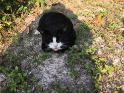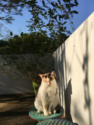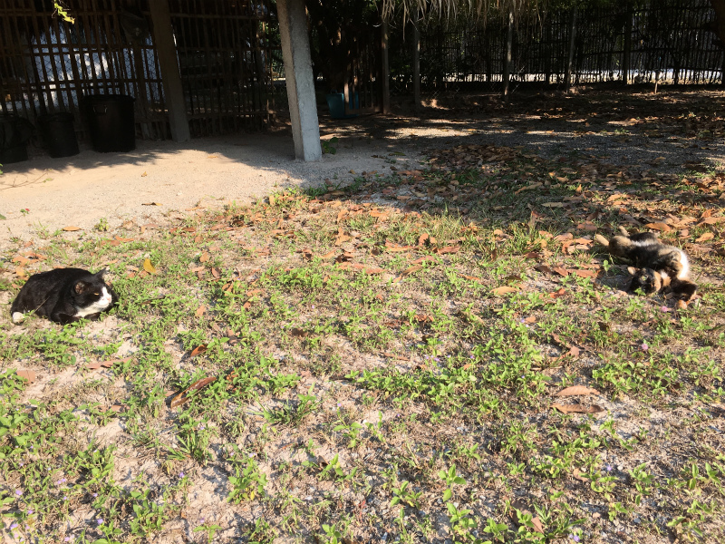 そして最近もう一匹、これもお隣りさんの飼い猫なのですが、殆ど近所の家々を転々としているお方。以前から時々来てはいましたが、ここのところご飯も食べ、殆どうちのベランダのソファーで寝ています。名前はちびテン。雄叫びのような鳴き声、過食症と思われる異常な食欲。そしてデブ。どうもこの大声は耳が聞こえないらしいという新説が浮上しているのですが、そのようでもあり、聞こえているようでもあり、分かりません。ぶっちゃんのご飯は全部食べてしまうので、今、家の中と外に分けました。