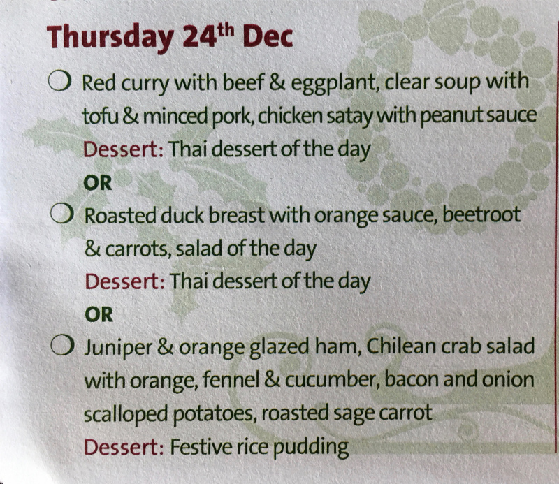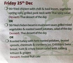 クリスマスは普通なんだなーーーと思っていたら、下記のスペシャルメニューがあるからチョイスし直してくださいと、置いてありました。