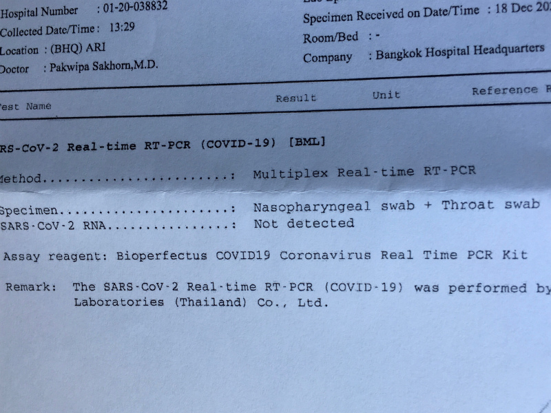 バンコクホスピタルの先生から朝8時半以降に電話があると聞いていたのですが、8時前に手紙がドアから差し込まれていて、ウィルス検出されずと書いてあって、一安心。