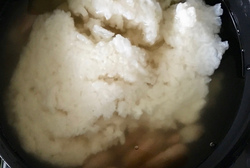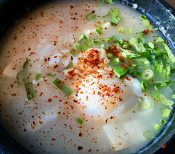 今日のお粥は、魚がたっぷり入っていて、温泉卵がありがたかった。