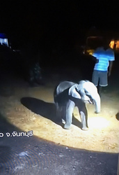 今朝のタイのニュースを観ていたら、チャンタブリー県で仔象がバイクと衝突というニュースが。