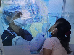 ロックダウンされたサムットサコン県でのPCR検査に長蛇の列。