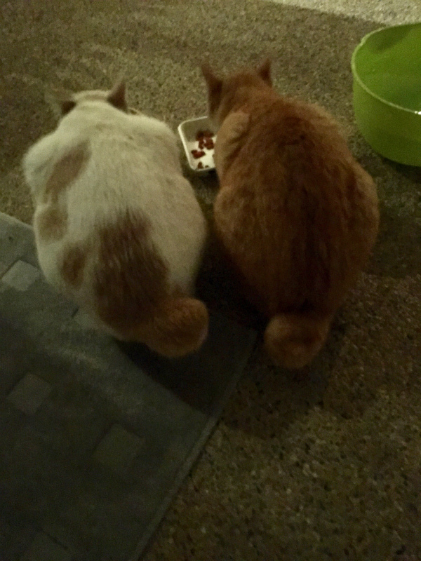 そして今朝、5時前に起きたら、早速キキと一緒に兄弟のマルもご飯を食べに来ました。