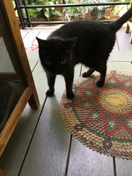 彼女は動物大好き! 近所の黒猫を可愛がり、負傷していたニワトリの世話をしてそのまま飼っています。