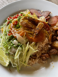 ゲーンウェラーでは、週に数日、今は一品、テイクアウトやっていて、金曜日に念願のカオグルッガピ(エビ味噌ご飯)を食べることができました。