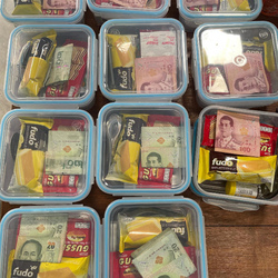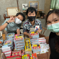 今回は、失業者と貧困で苦しんでいる人たちに配る支援ボックス(直訳はラッキーボックス?)に使ってもらいました。