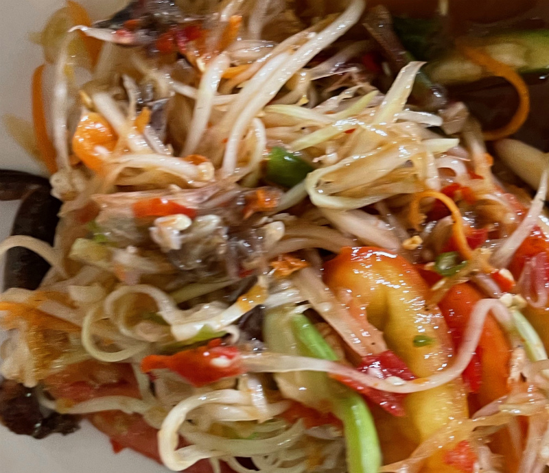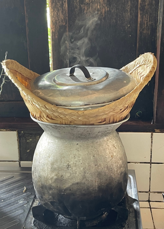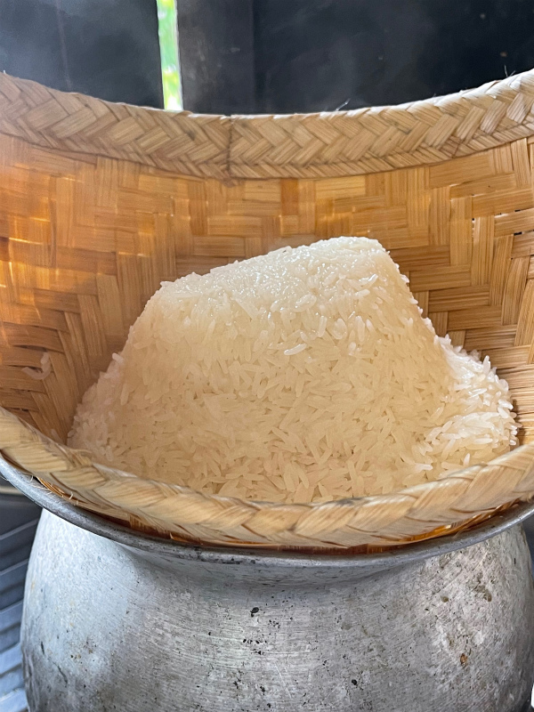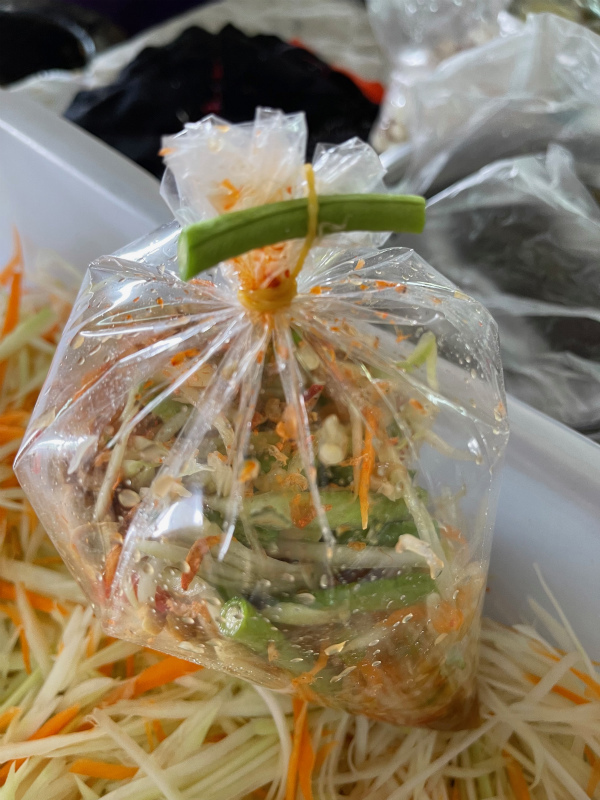 バーンロムサイに用事があっていったら、ランチがソムタム(パパイヤサラダ)、ガイトー(鳥の唐揚げ)、そしてカオニャオ(もち米)というゴールデントリオ。